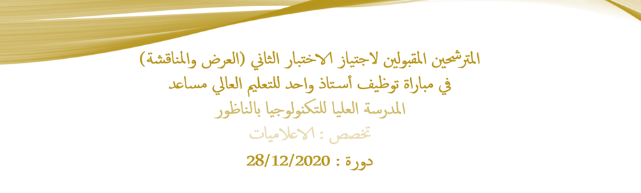 المترشحين المقبولين لاجتياز الاختبار الثاني (العرض والمناقشة) في مباراة توظيف أستاذ واحد للتعليم العالي مساعد تخصص : الاعلاميات