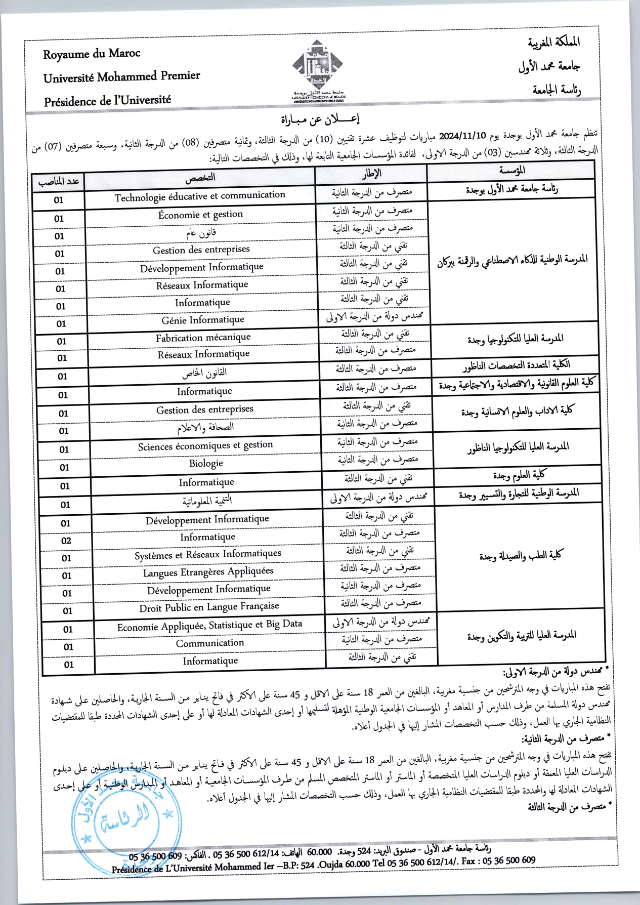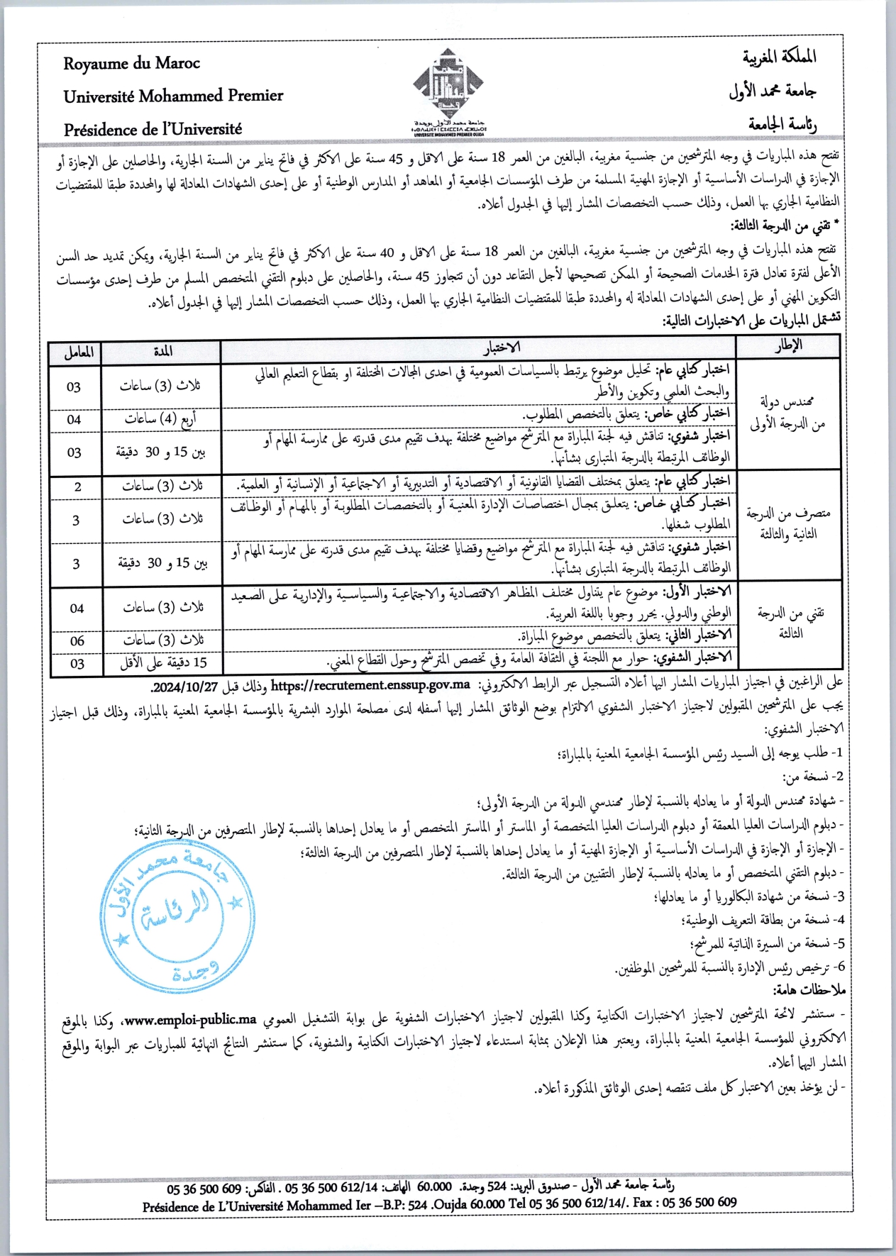 اعلان مباراة توظيف أطر ادارية وتقنية