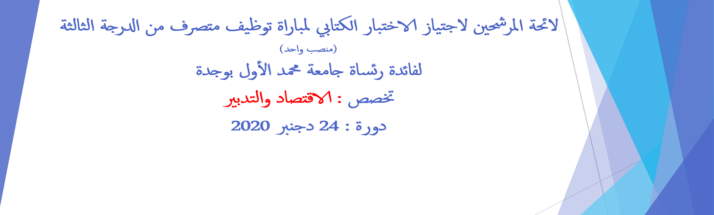 لائحة المرشحين لاجتياز الاختبار الكتابي لمباراة توظيف متصرف من الدرجة الثالثة (منصب واحد)
