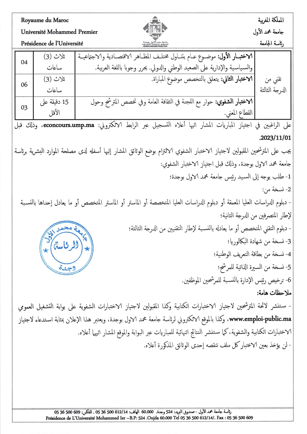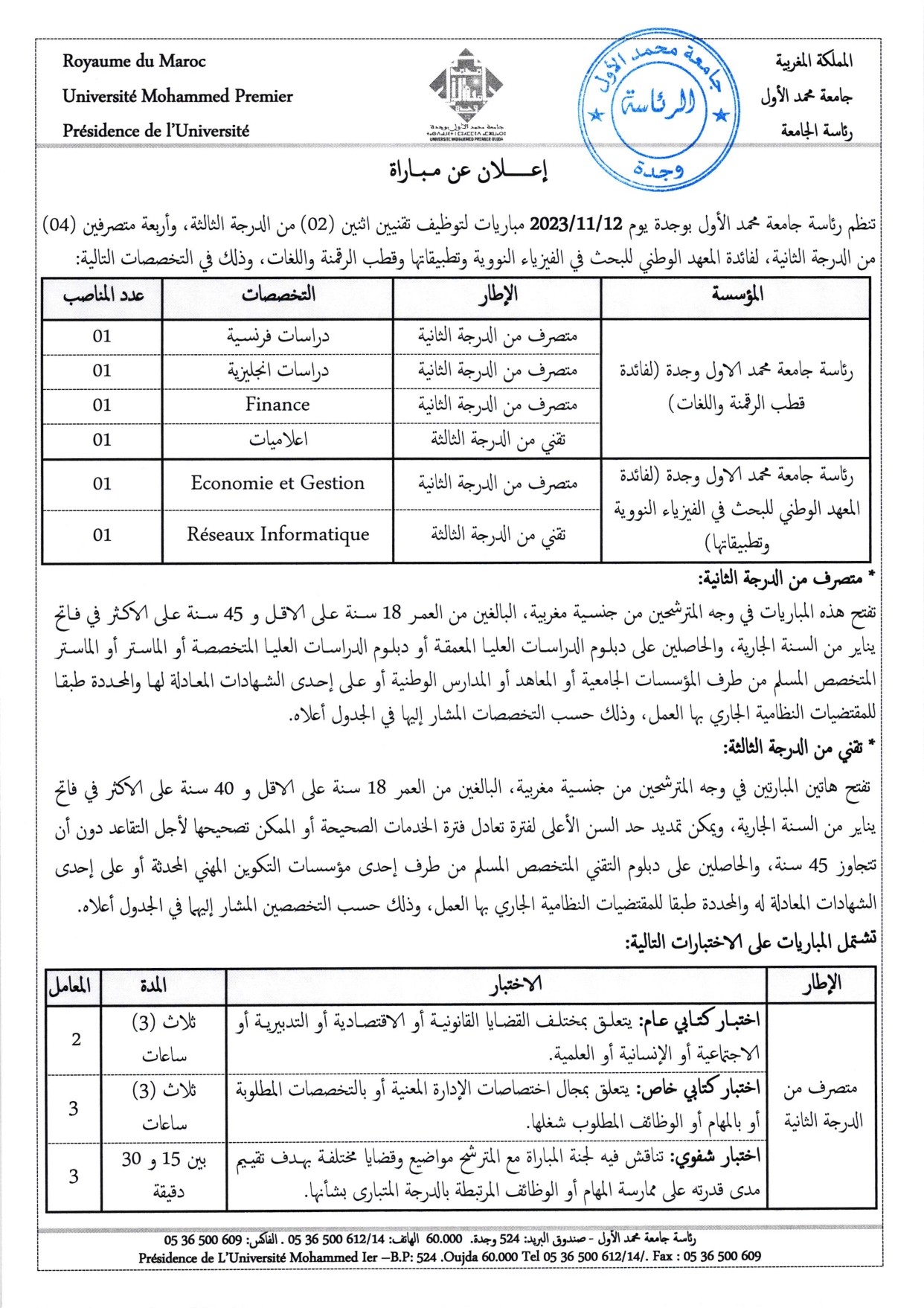 مباريات توظيف أطر إدارية وتقنية، دورة 12 نونبر 2023