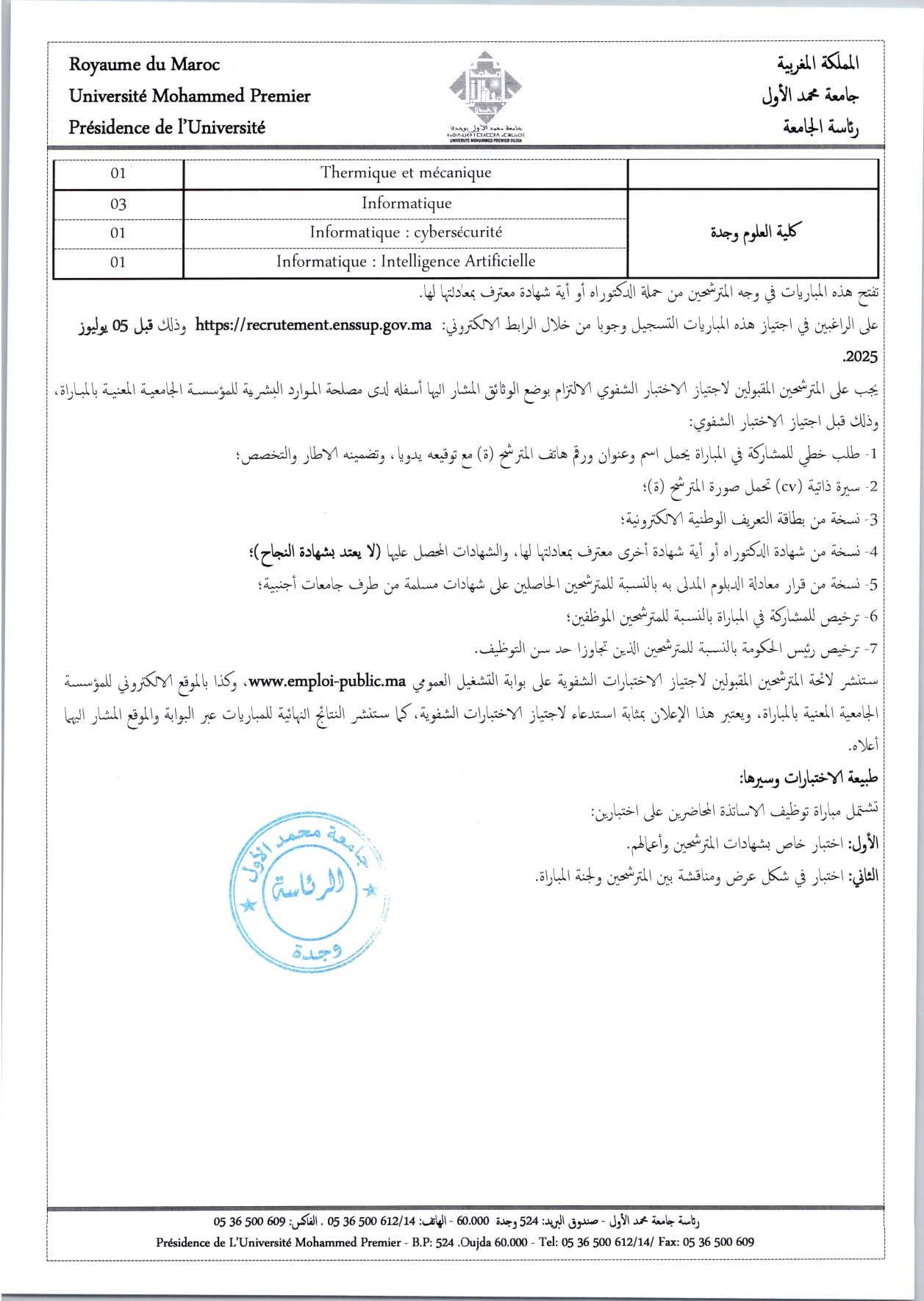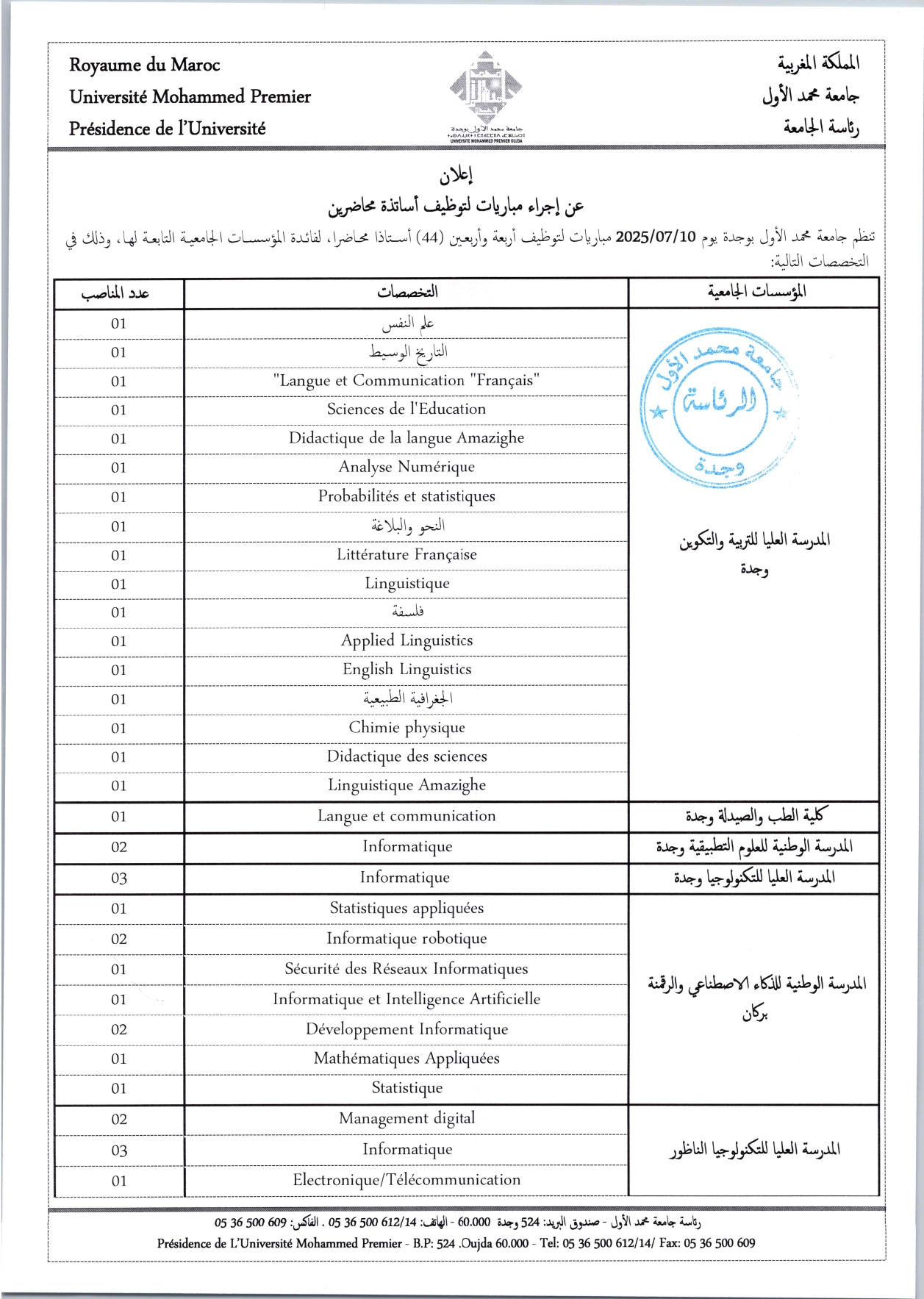 إعلان عن إجراء مباريات لتوظيف أساتذة محاضرين