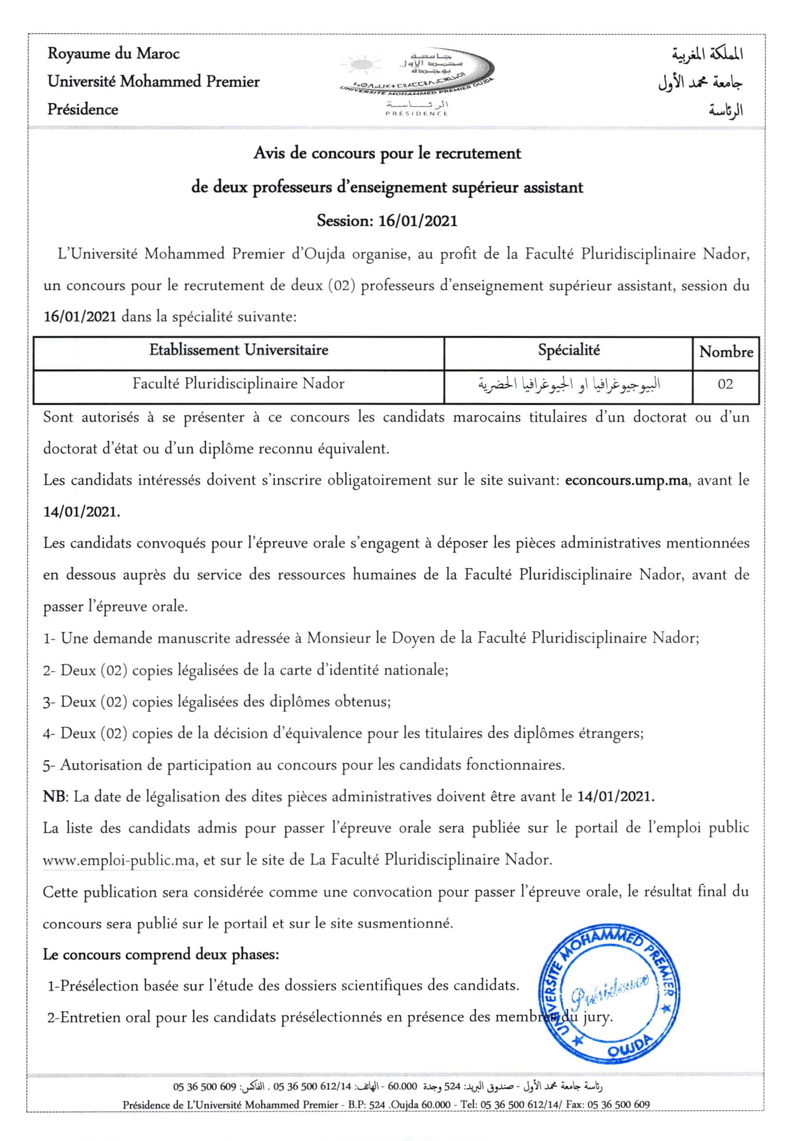 اعلان عن مباراة توظيف استاذ التعليم العالي مساعد