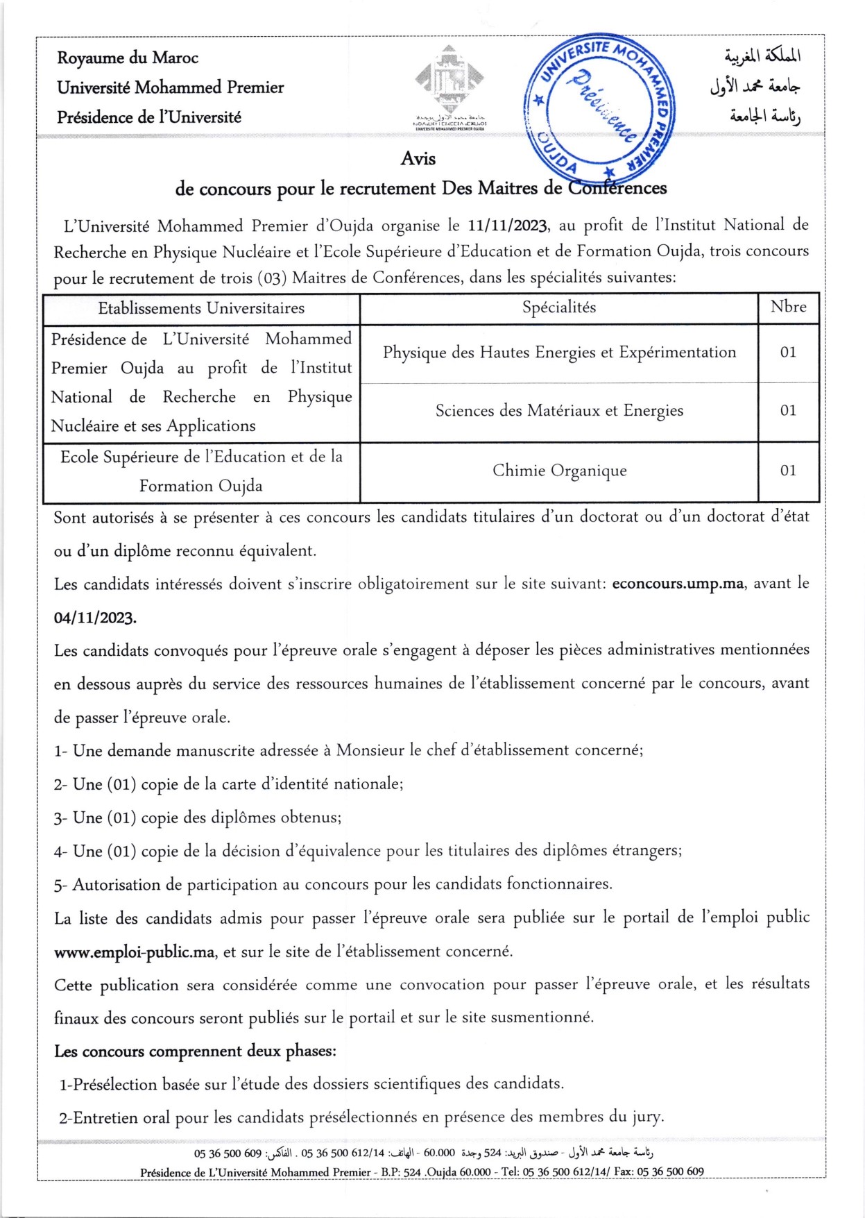 اعلان مباريات توظيف أساتذة محاضرين محاضرين