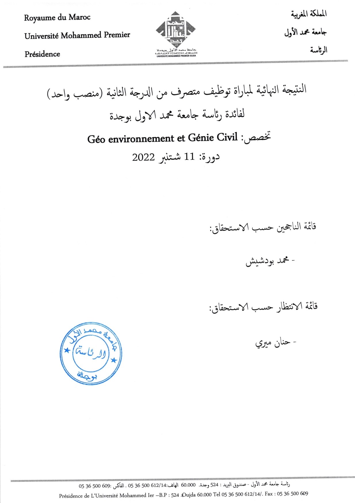 النتيجة النهائية لمباراة توظيف متصرف من الدرجة الثانية