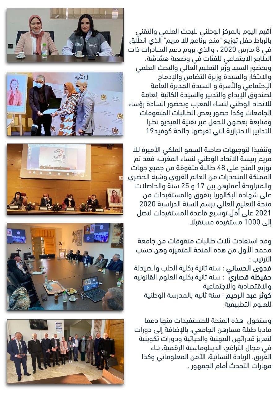 استفادة ثلاث طالبات متفوقات من جامعة محمد الأول من منح برنامج للا مريم