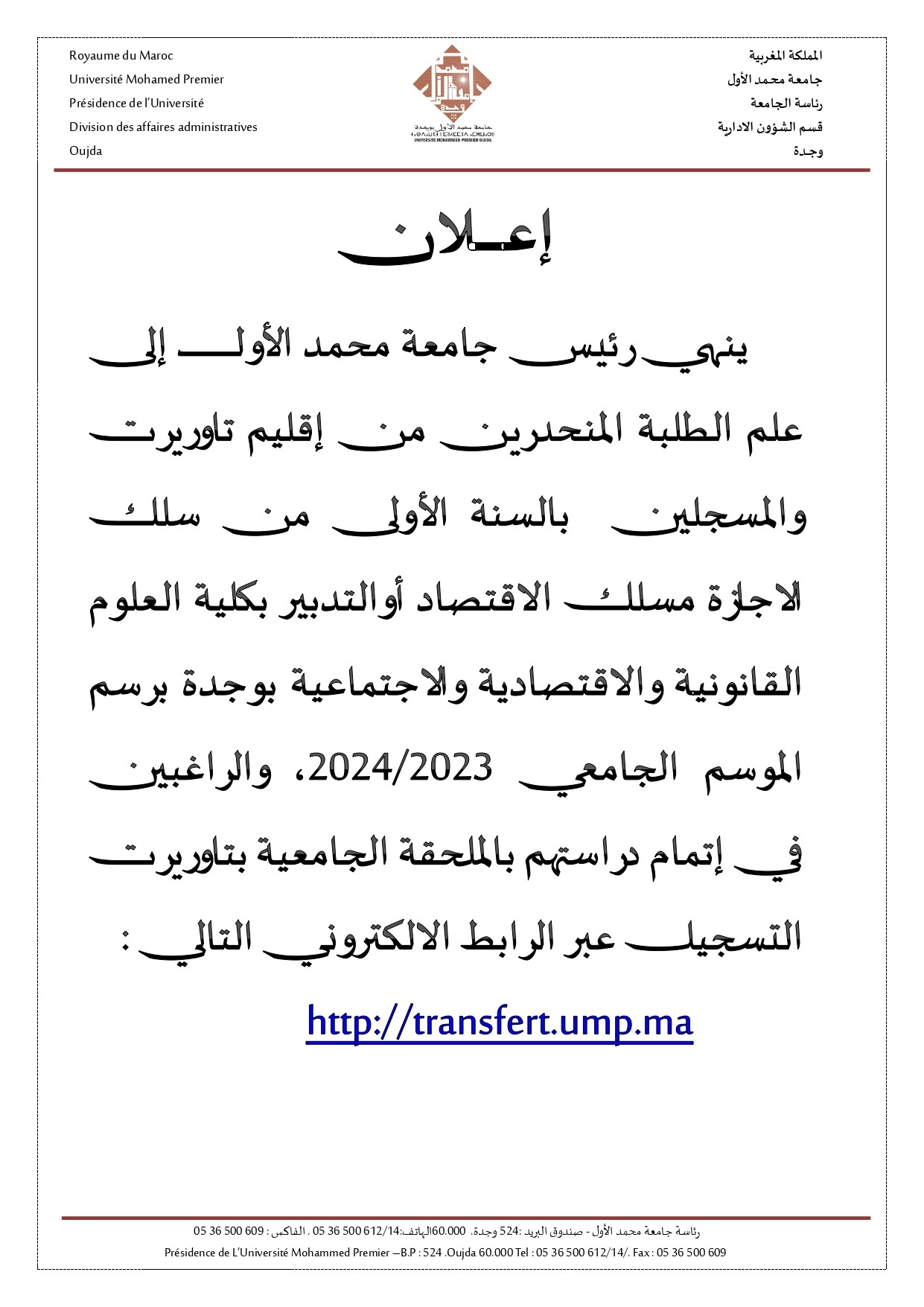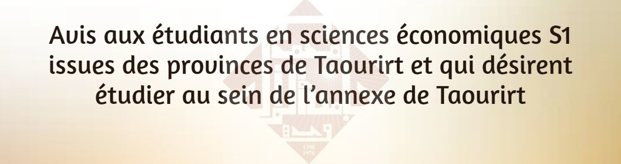 Avis aux étudiants en sciences économiques S1 issues des provinces de Taourirt et qui désirent étudier au sein de l’annexe de Taourirt