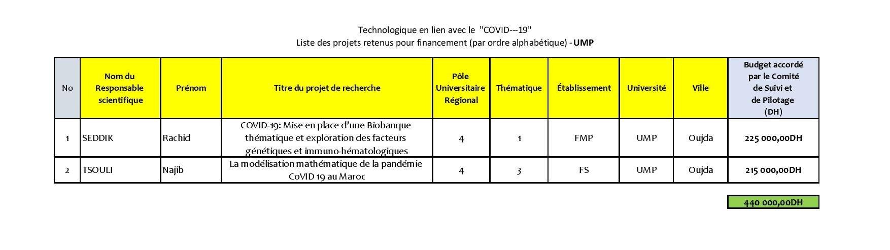 و تجدر الإشارة إلى أنه و إضافة لهذين المشروعين المستفيدين من التمويل الخاص بجائحة كوفيد 19، فازت مشاريع أخرى تقدمت بها جامعتي فاس و مكناس و تعد جامعة محمد الأول فيها شريكا في المشروع تماشيا مع الدينامية الوطنية في هذا الإطار التشاركي و الانفتاحي.