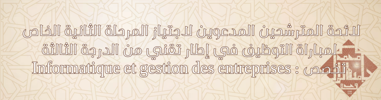 Informatique et gestion des entreprises : لائحة المترشحين المدعوين لاجتياز المرحلة الثانية الخاص لمباراة التوظيف في إطار تقني من الدرجة الثالثة تخصص