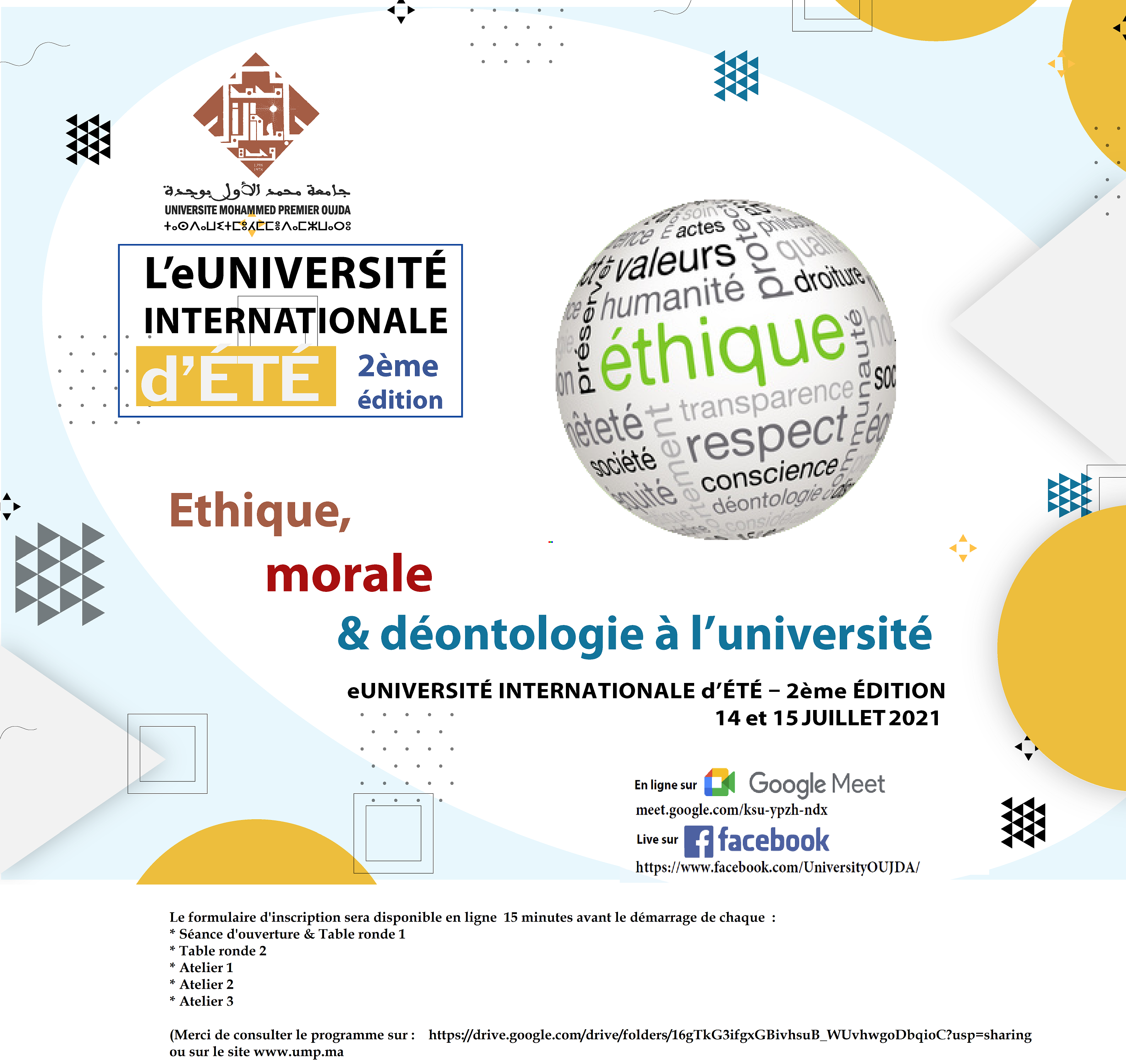 La 2ème édition de l’e-Université Internationale d’été sous la thématique « Ethique, morale et déontologie à l’université »