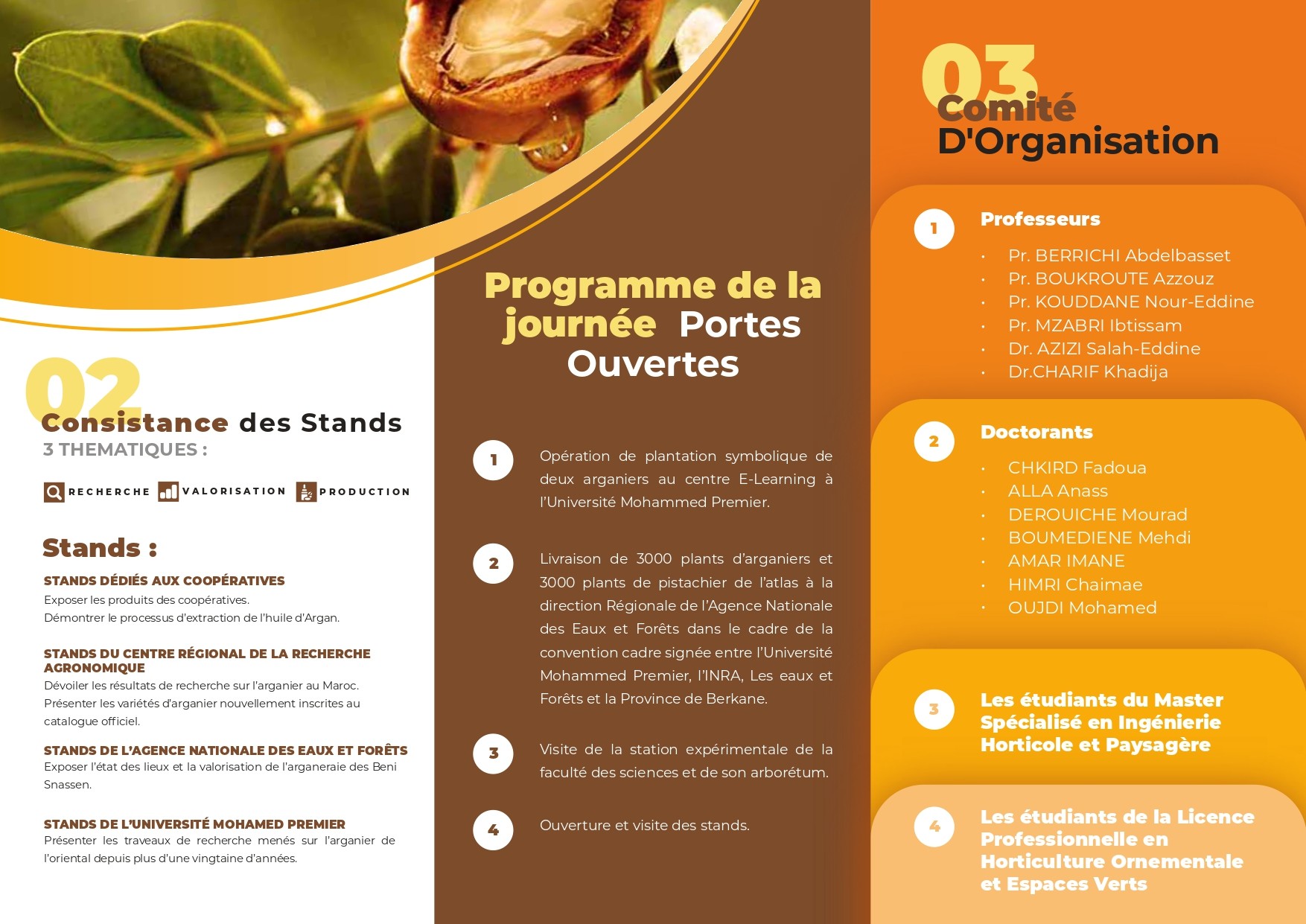 ووضع فريق البحث “البستنة والمناظر الطبيعية والغابات”، المشرف على اليوم الدراسي، عددا من المنصات المعرفة بأنواع أشجار الأركان التي تشكل موضوع أبحاث عدد من طلبة سلكي الماستر والدكتوراه بالكلية ذاتها، لا سيما المنتمين إلى مختبر تحسين الإنتاج الزراعي والتكنولوجيا الحيوية والبيئة.