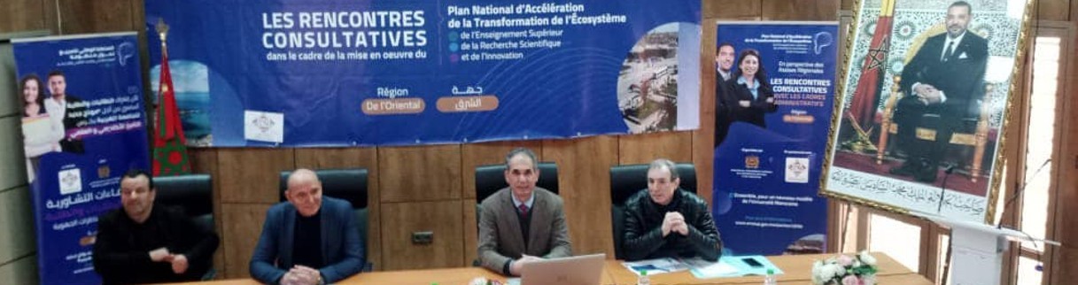 جلسات الانصات و المشاورة داخل كلية العلوم بوجدة. كل مكونات المؤسسة ابت الى ان تشارك بمقترحات قيمة من شأنها الرفع من مردودية الجامعة على المستوى البيداغوجي و البحث العلمي لجعل الجامعة قاطرة للتنمية.