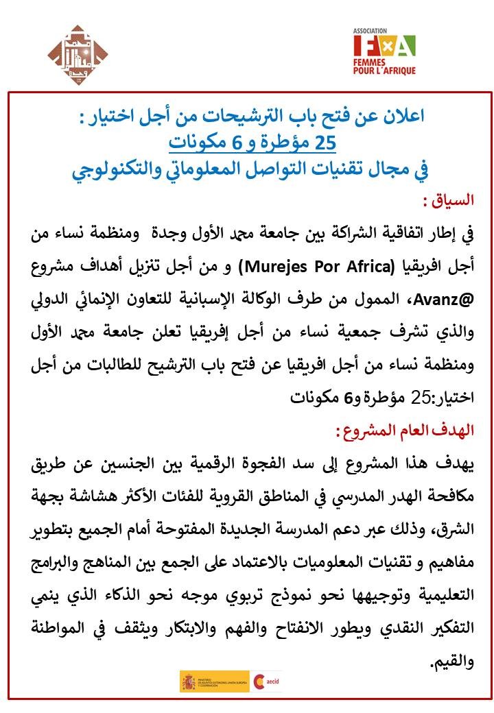 خاص بطالبات جامعة محمد الأول: الإعلان عن فتح باب الترشيحات من أجل اختيار 25 مؤطرة و6 مكونات في مجال تقنيات التواصل المعلوماتي والتكنولوجي