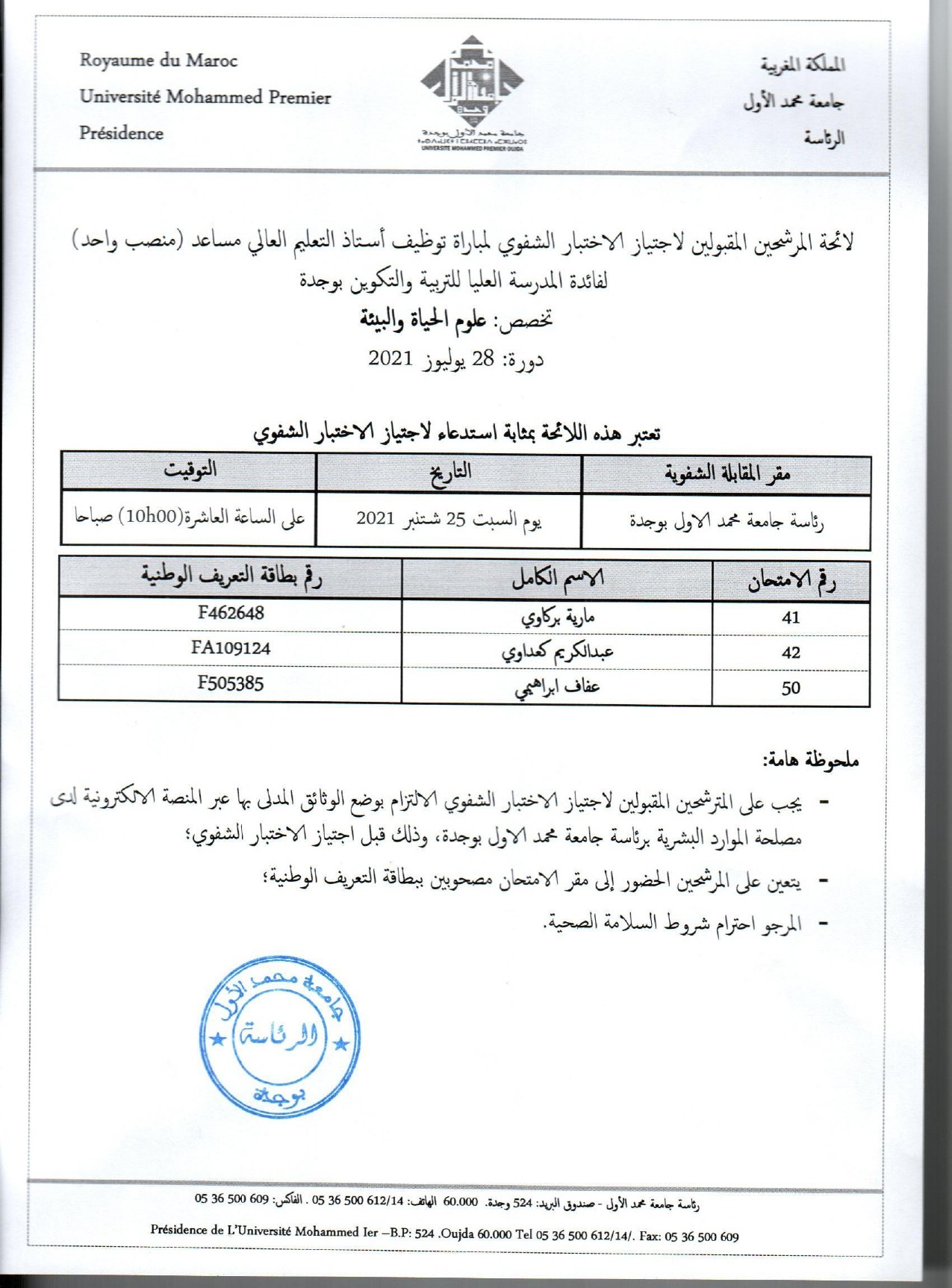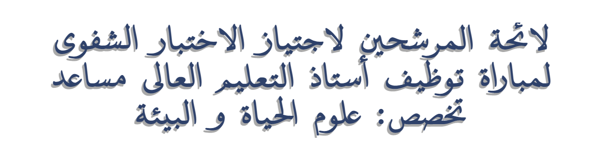 لائحة المرشحين لاجتياز الاختبار الشفوي لمباراة توظيف أستاذ التعليم العالي مساعد تخصص علوم الحياة و البيئة