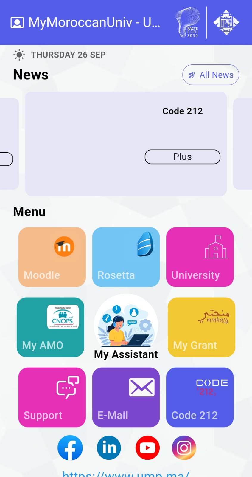 Dans le cadre de PACTESRI, nous sommes heureux de vous annoncer le lancement de notre nouvelle application mobile nationale MyMoroccanUniv, développée par le Ministère de l’Enseignement Supérieur, de la Recherche Scientifique et de l’Innovation, en collaboration avec les universités marocaines. Cette application est conçue pour faciliter votre expérience académique et administrative, et est actuellement disponible au téléchargement pour les utilisateurs Android. Les utilisateurs iOS seront informés de sa disponibilité très prochainement.