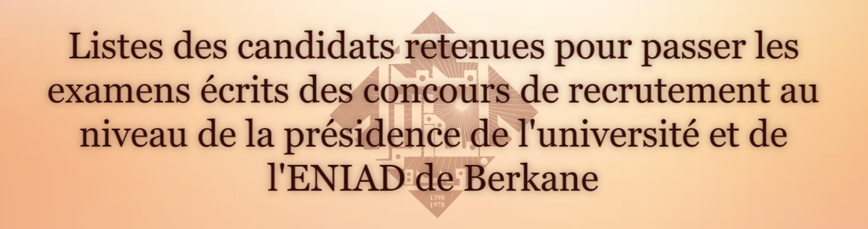 listes des candidats retenues pour passer les examens écrits des concours de recrutement au niveau de la présidence de l'université et de l'ENIAD de Berkane