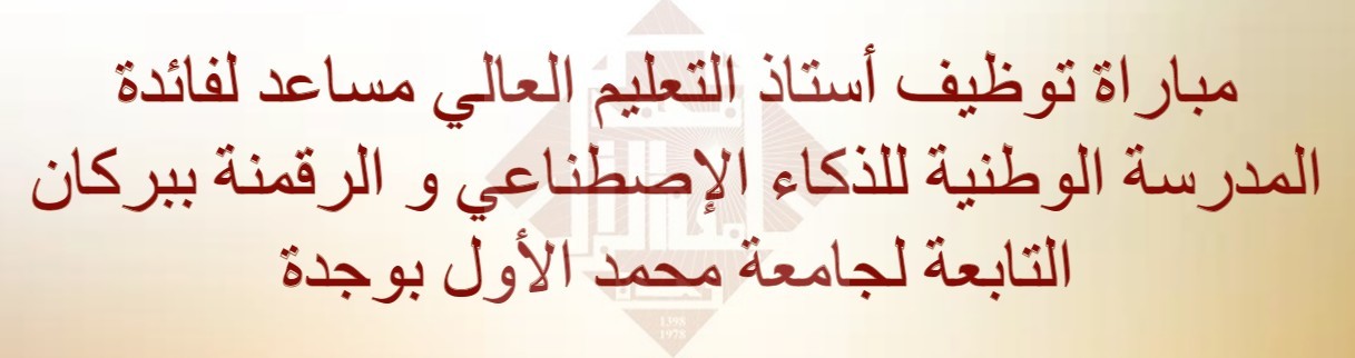 مباراة توظيف أستاذ التعليم العالي مساعد لفائدة المدرسة الوطنية للذكاء الإصطناعي و الرقمنة ببركان التابعة لجامعة محمد الأول بوجدة مباراة توظيف أستاذ التعليم العالي مساعد لفائدة المدرسة الوطنية للذكاء الإصطناعي و الرقمنة ببركان التابعة لجامعة محمد الأول بوجدة