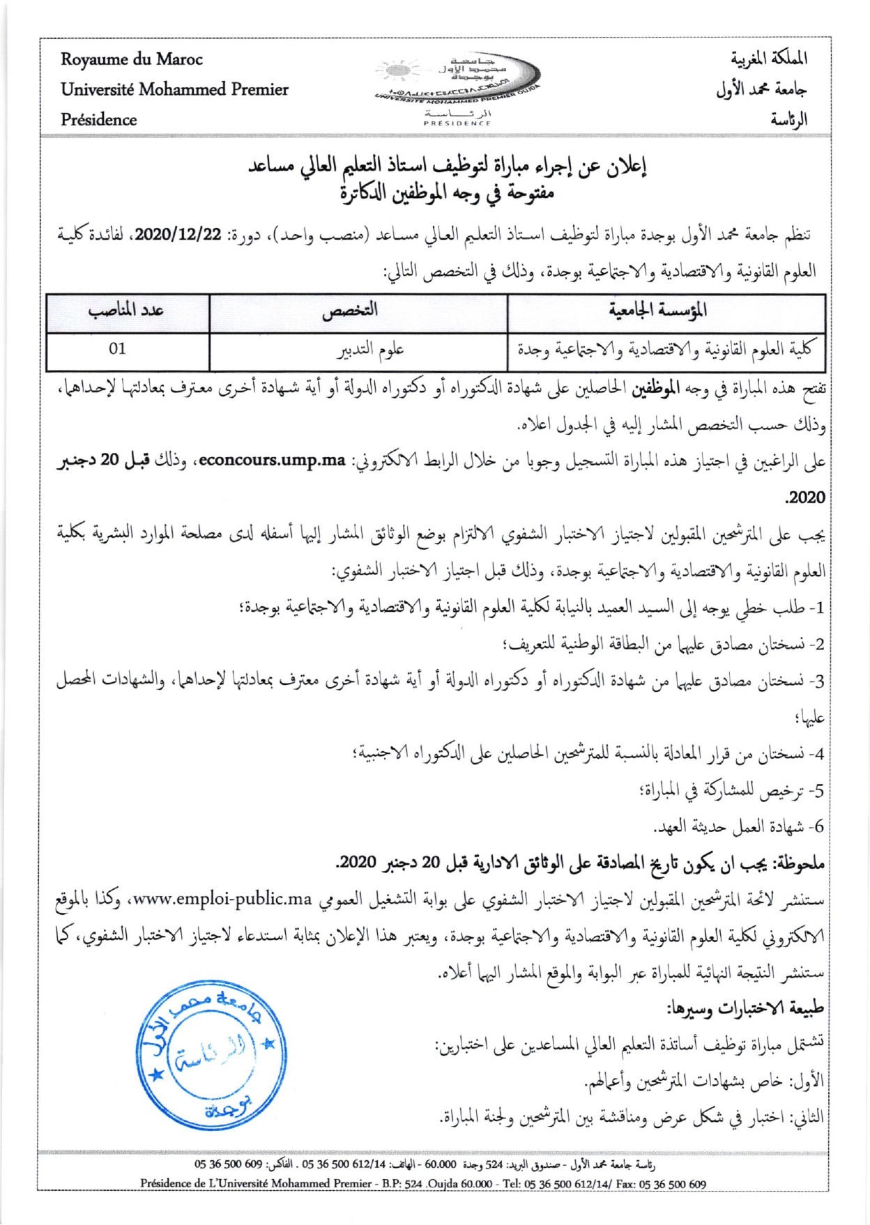 مباراة توظيف استاذ التعليم العالي مساعد مفتوحة في وجه الموظفين الدكاترة