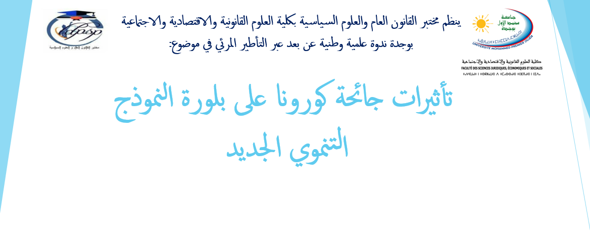 "ندوة علمية وطنية عن بعد عبر التأطير المرئي في موضوع: "تأثيرات جائحة كورونا على بلورة النموذج التنموي الجديد
