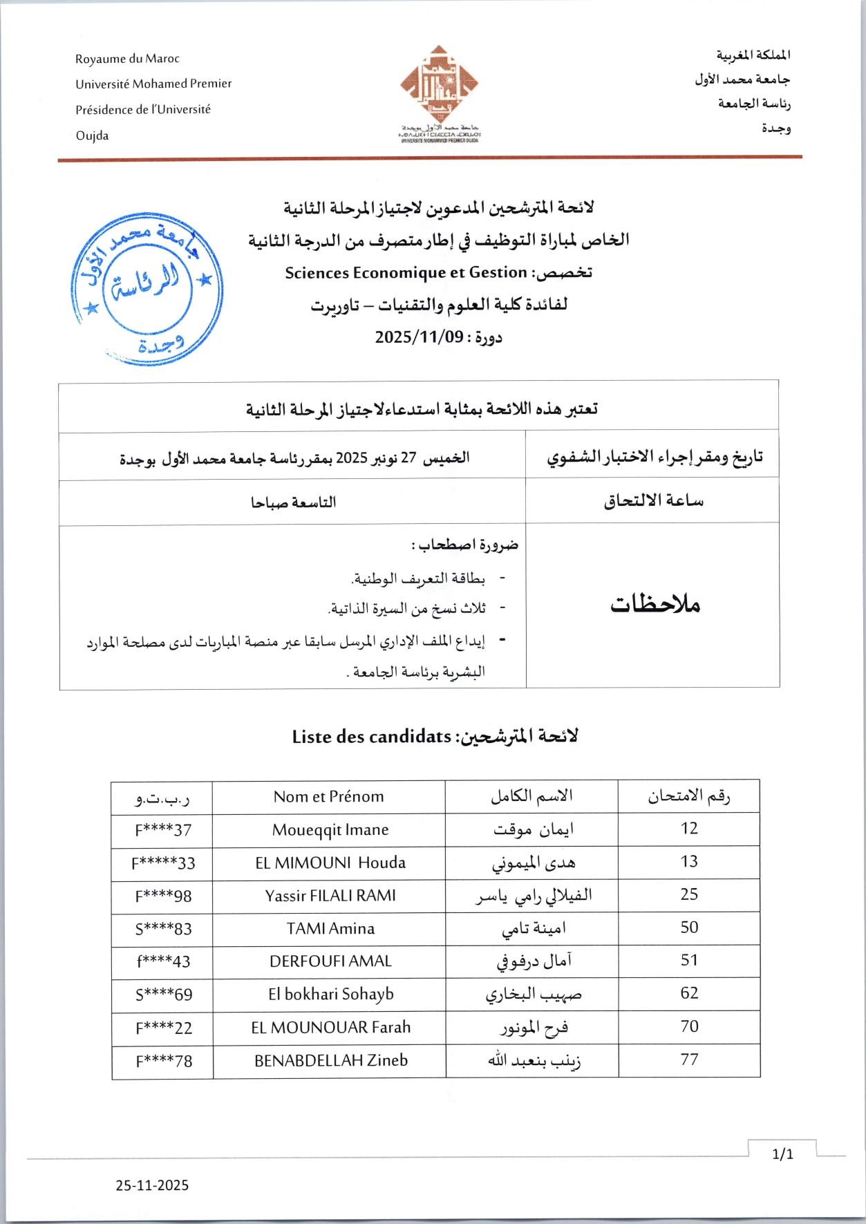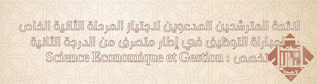 Science Economique et Gestion : لائحة المترشحين المدعوين لاجتياز المرحلة الثانية الخاص لمباراة التوظيف في إطار متصرف من الدرجة الثانية تخصص