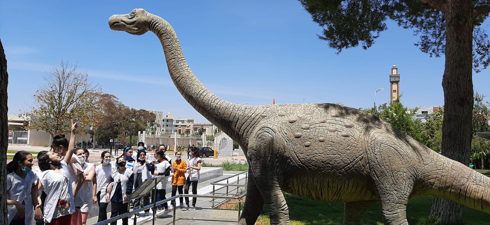 كما قام التلاميذ بزيارة لمجسمات حيوانات تلك الفترة بأبعادها الحقيقية و الموجودة بفناء كلية العلوم.