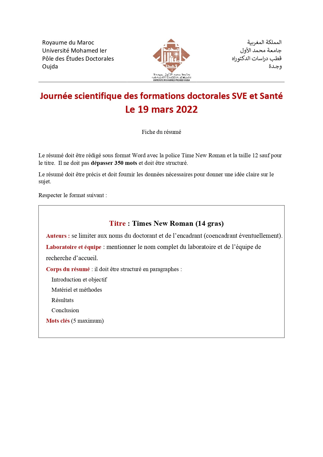 Centre d'Etudes Doctorales : Sciences et Techniques