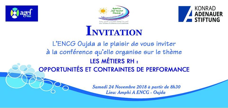 Conférence -Débats sur le théme : Les Métiers RH " Opportunités et contraintes de performance " 2018-11-24 2018-11-24
