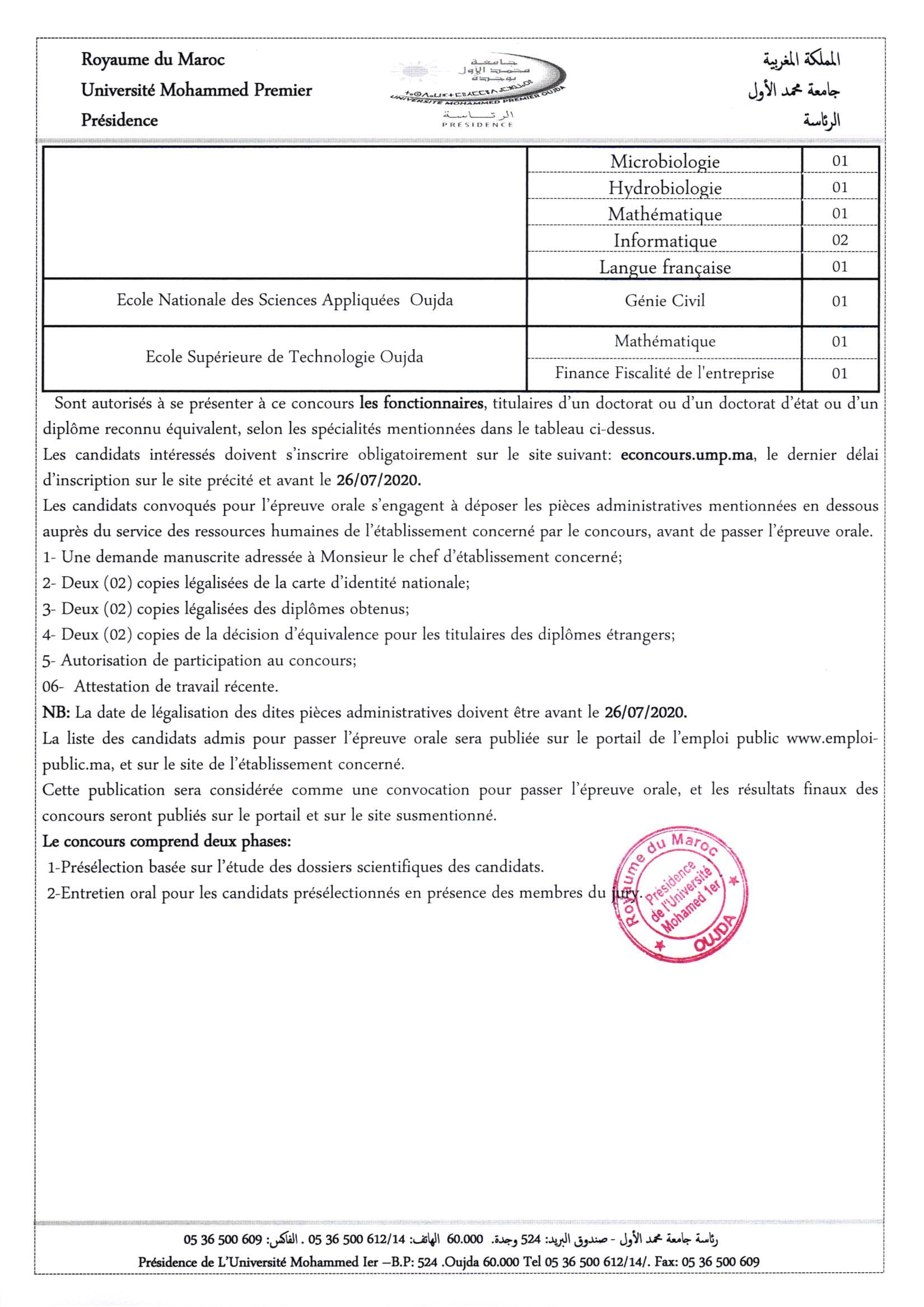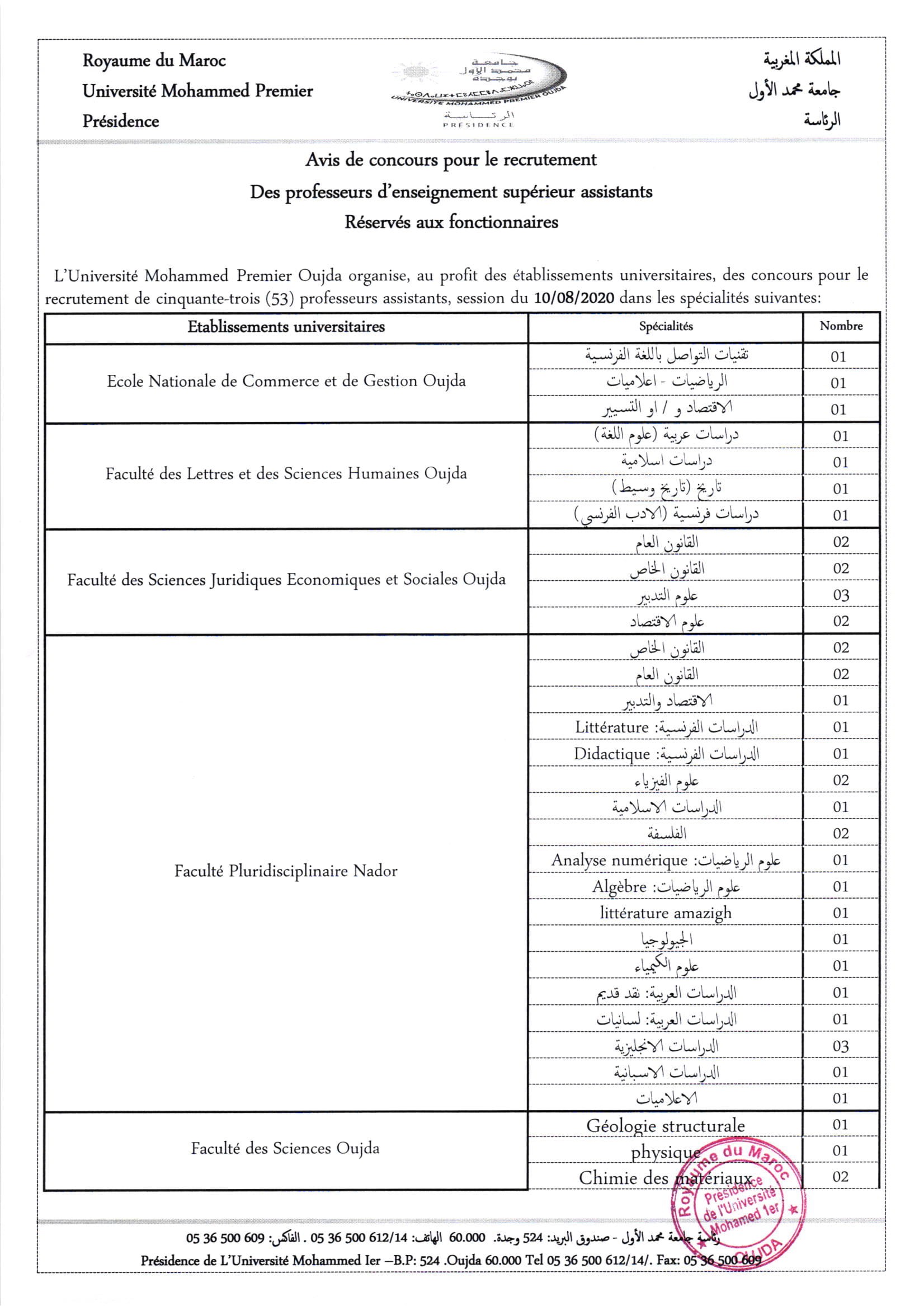 Avis de concours PA (Professeurs Assistants) - Réservés aux fonctionnaires - session 10/08/2020