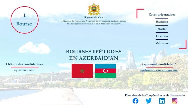 La République d’Azerbaïdjan offre, au titre de l’année universitaire 2020-2021, une (1) bourse d’études au profit des étudiants marocains désirant poursuivre leurs études supérieures au sein des principales Universités Azéries et ce, dans les cycles suivants :