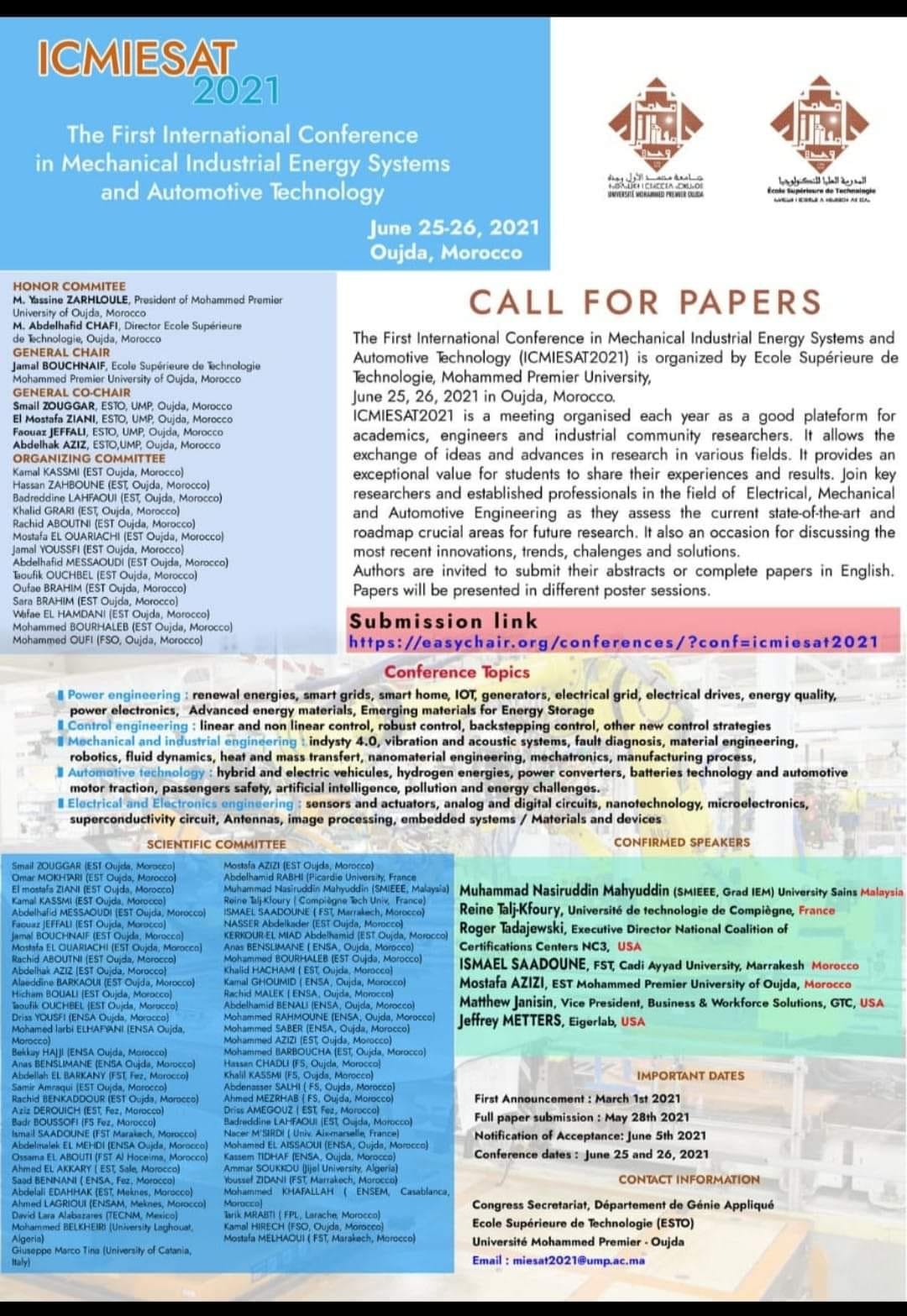 Call for paper - The First International Conference in Mechanical Industrial Energy Systems and Automotive Technology