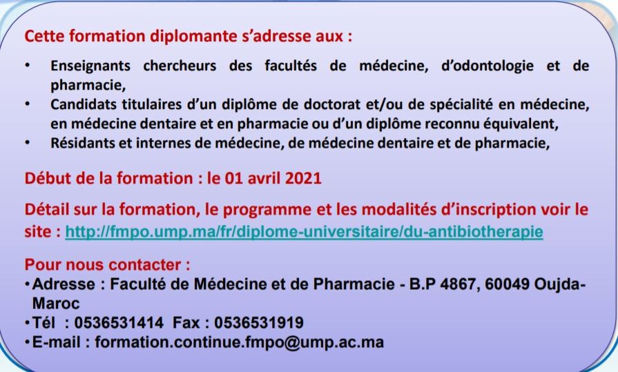 DU Antibiothérapie Affiche Modalités d'inscription Maquette DU Antibiothérapie Programme Antibiothérapie