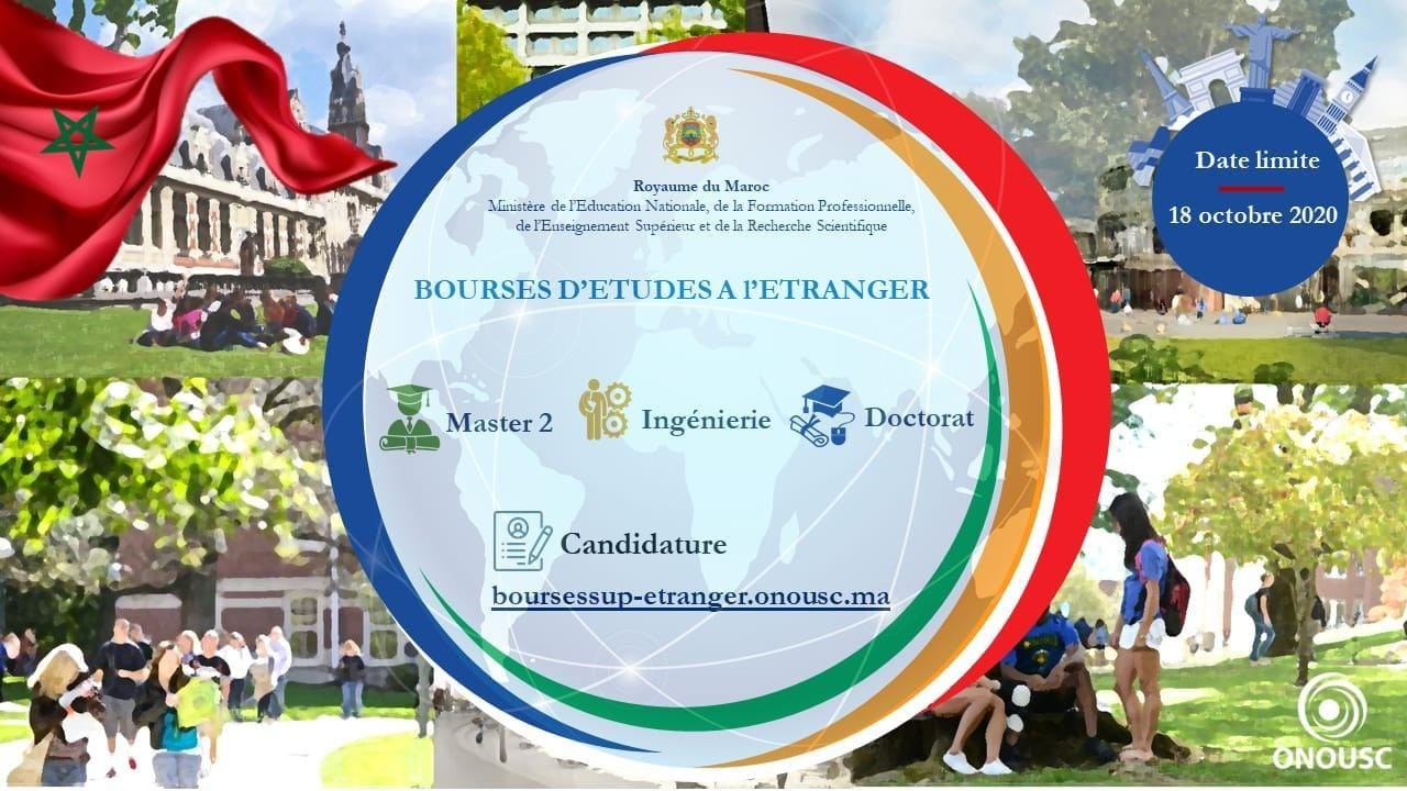 Le Ministère de l’Education Nationale, de la Formation Professionnelle, de l’Enseignement Supérieur de la Recherche Scientifique, Département de de l’Enseignement Supérieur et de la Recherche Scientifique, annonce le lancement du programme « Bourses d’Etudes à l’Etranger » au profit des étudiants marocains poursuivant leurs études supérieures à l’étranger, au titre de l’année universitaire 2020-2021, dans un des cycles suivants :