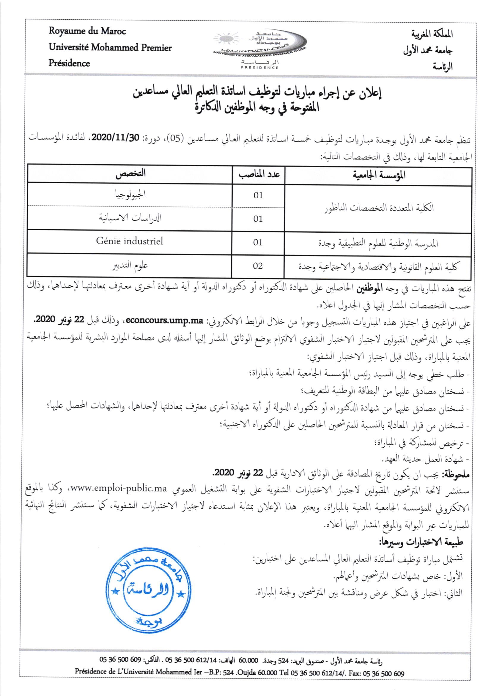 اعلان عن مباريات توظيف اساتذة التعليم العالي مساعدين