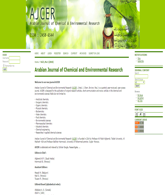 Arabian Journal of Chemical and Environmental Research Arabian Journal of Chemical and Environmental Research